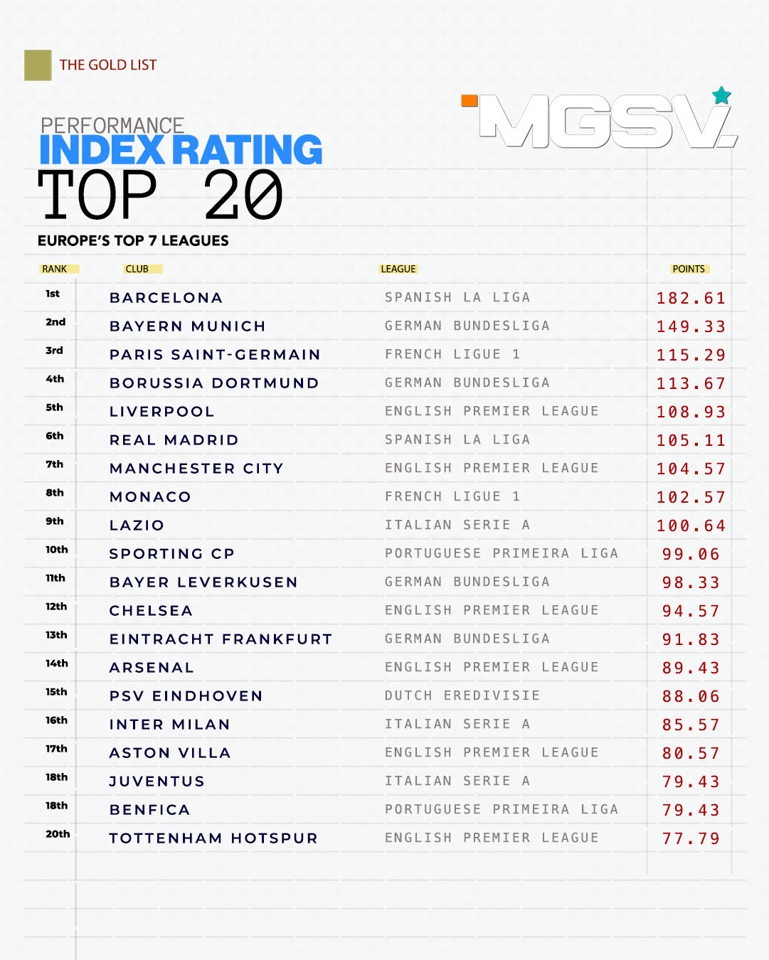 Barcelona is leading the ranking in our latest Performance Index Rating