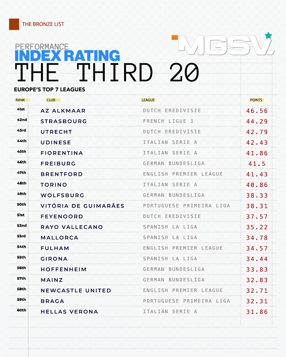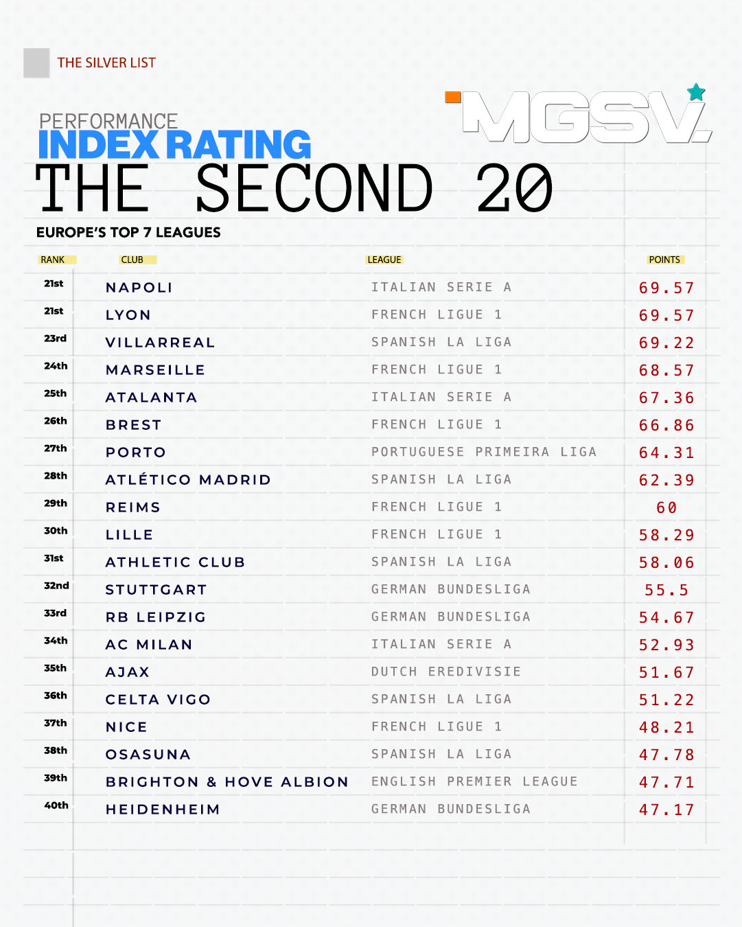 CLUB PERFORMANCE INDEX RANKING