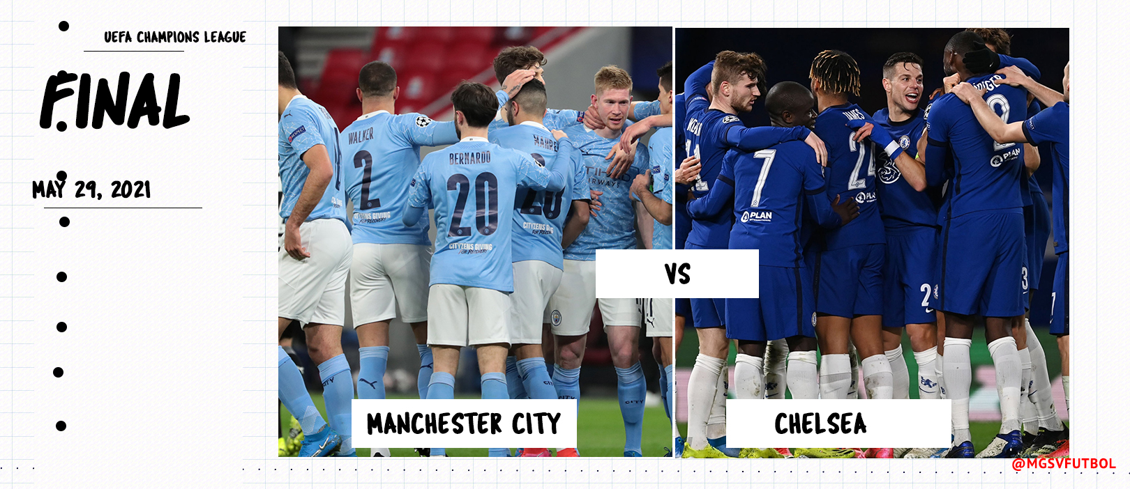 Manchester City and Chelsea will go at it for the 2021 UEFA Champions League title.