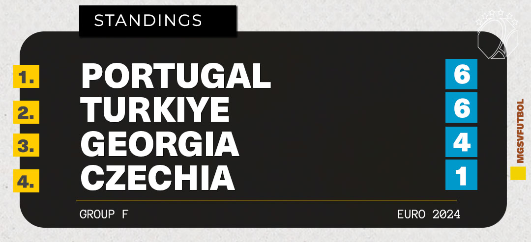 In Group F, Georgia picked up a win over Portugal to avoid ending their debut tournament in the group stage, while Turkey scored late to claim a win over Czechia and finished the group in second place.