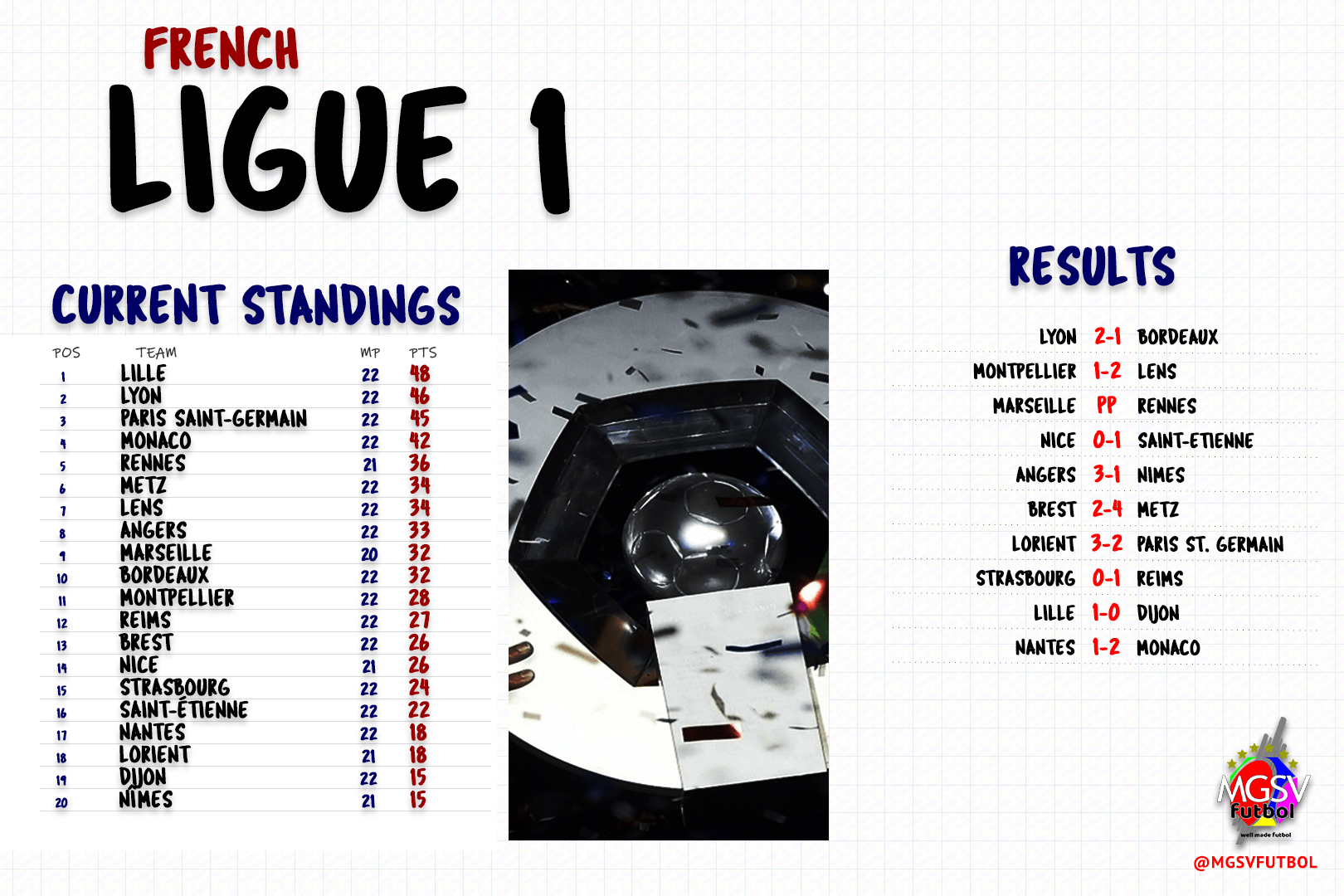 Lille are top of the league after Paris St. Germain’s shocking defeat at Lorient.