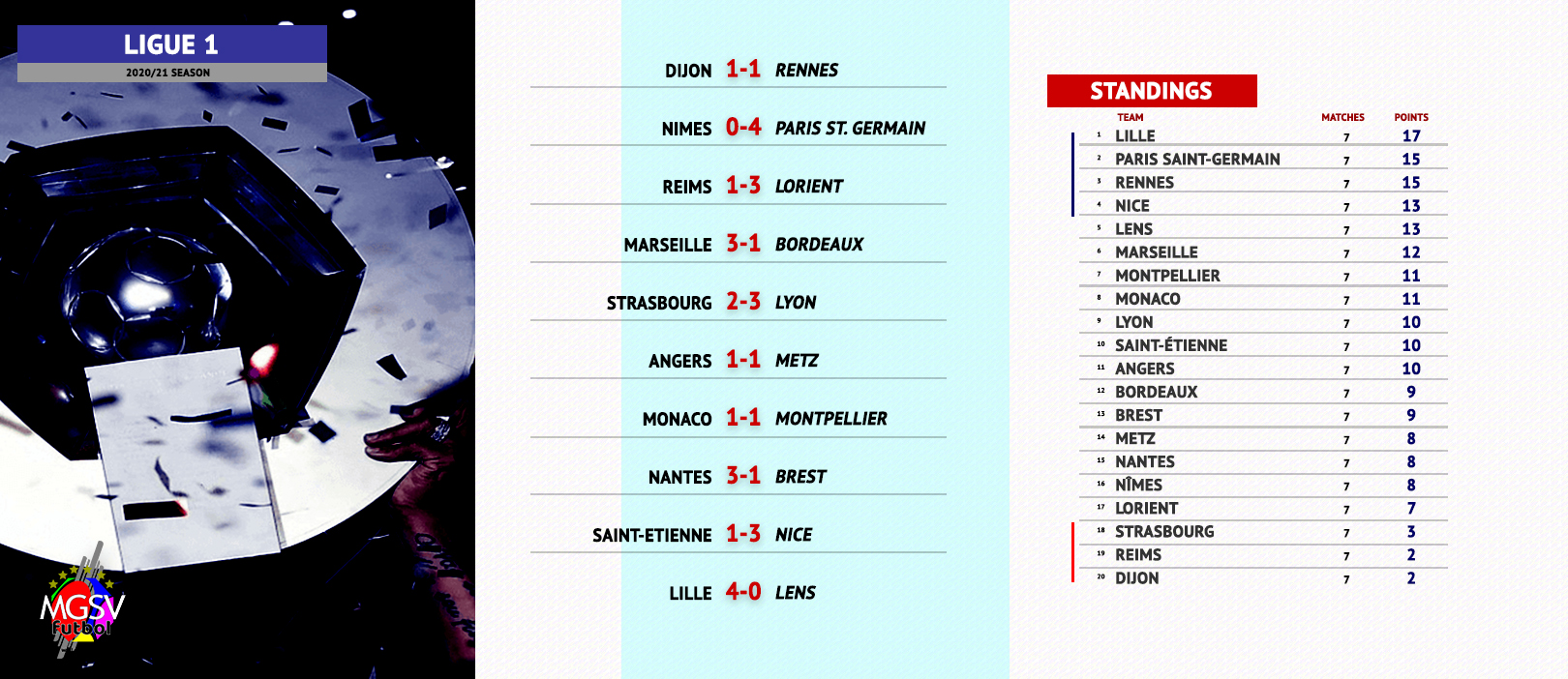 - Lille held on to top spot after a 4-0 victory at home against newly-promoted Lens.