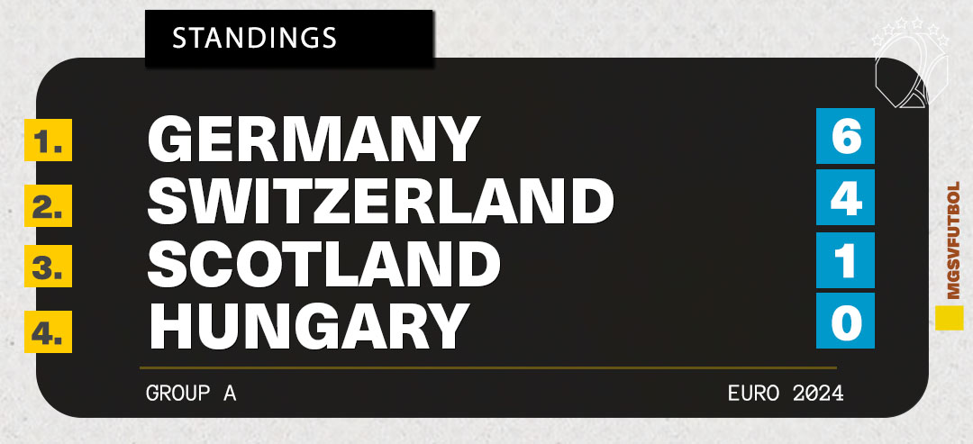 Germany and Switzerland were looking to double their wins and qualify for the Round of 16, but only Germany picked up a win in Group A on this day, as Switzerland had to come from behind to get a point against Scotland.