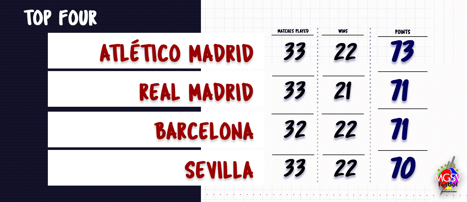 Barcelona with a game in hand will take the lead in the title race if their outstanding fixture ends in another league victory. A Barcelona win against Granada will put them a point on top of the league table.