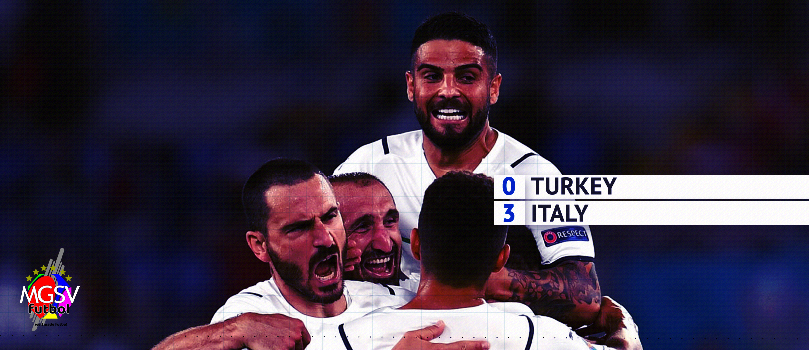 After a goalless first-half without a significant event, Merih Dermiral opened the scoring for the game (and tournament) with an own goal to put Turkey a goal down in the 53rd minute. Ciro Immobile doubled the lead before assisting Lorenzo Insigne to score Italy’s third goal of the match.